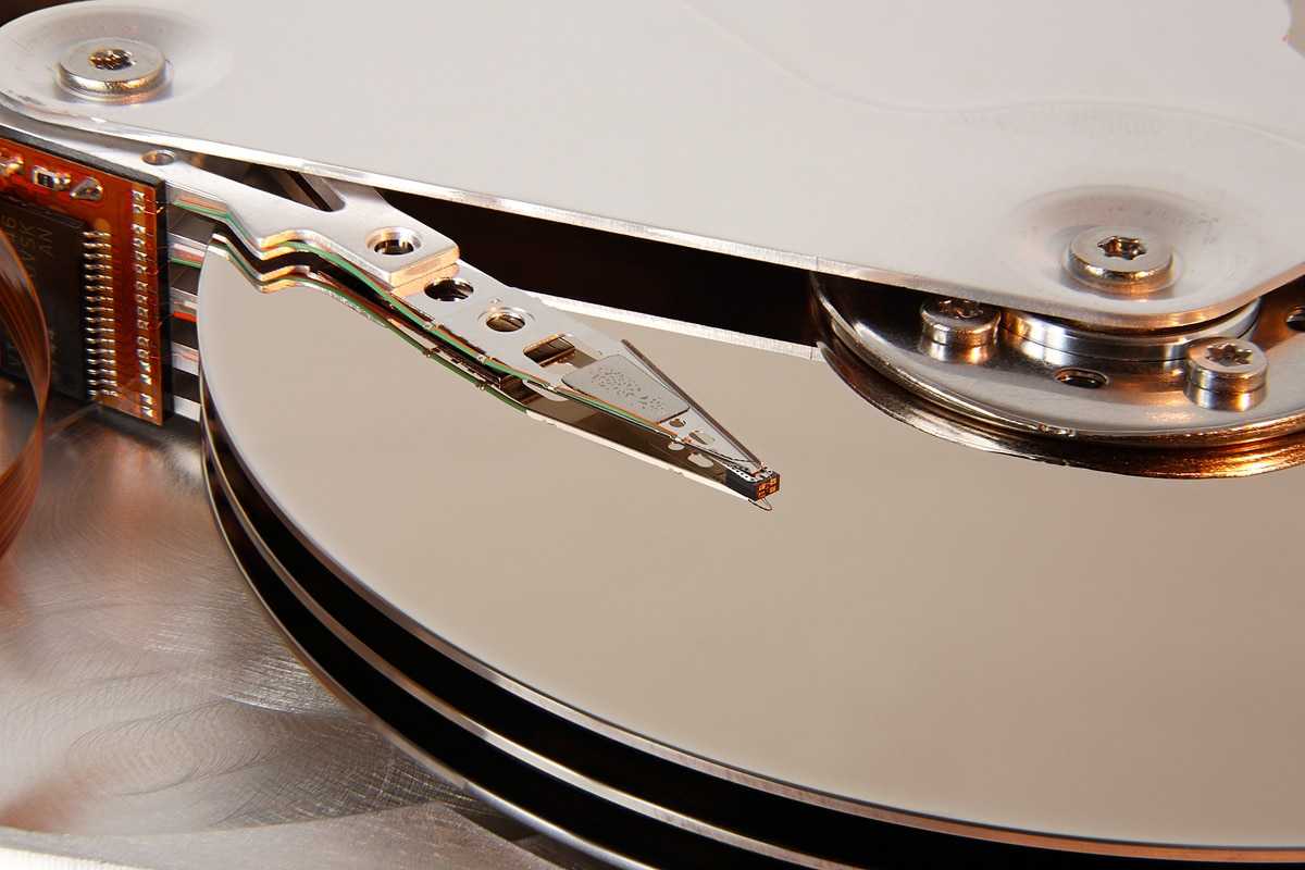 Жесткие диски состоят из ряда наложенных друг на друга металлических пластин, на каждой из которых есть своя считывающая и записывающая головка. Она отвечает за запись, чтение и удаление битов с пластины. Чем больше битов можно записать на пластину, тем больше емкость диска.