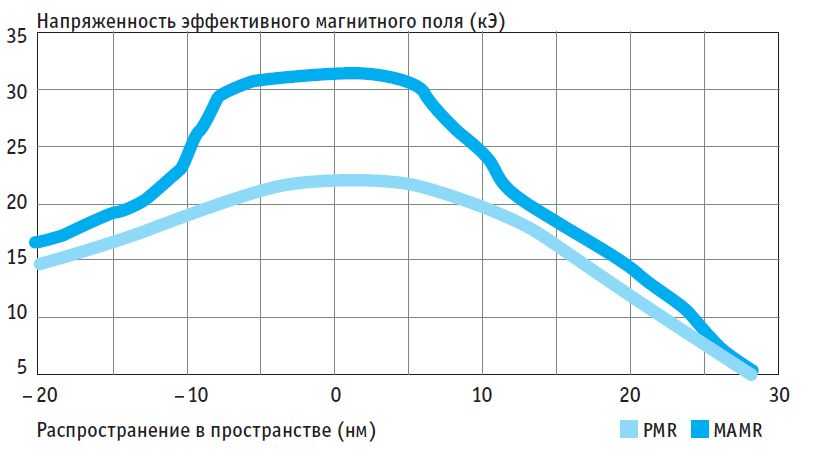 Технология записи MAMR, основанная на излучении микроволн, подразумевает более высокую напряженность магнитного поля, чем метод перпендикулярной записи (PMR) современных жестких дисков