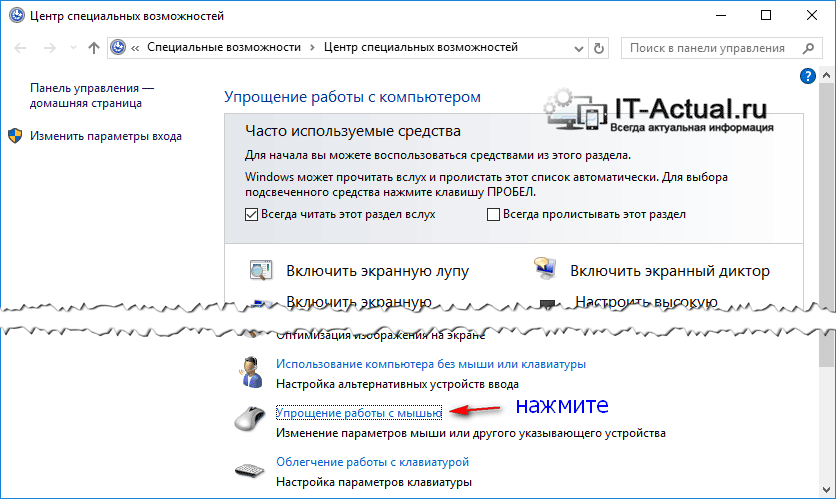 В Windows имеется очень удобная возможность управления курсором мышки в отсутствии самой мышки. Данная возможность включается и настраивается в системном окне Центр специальных возможностей.