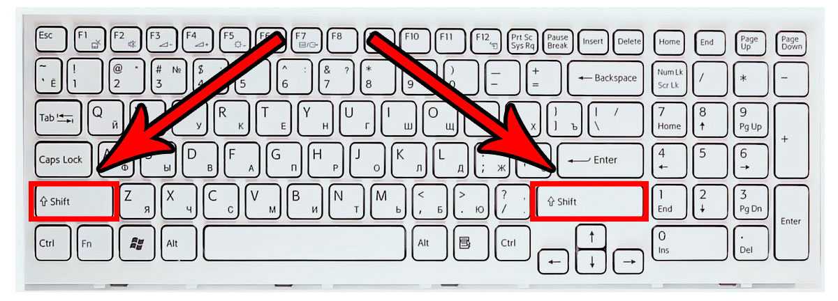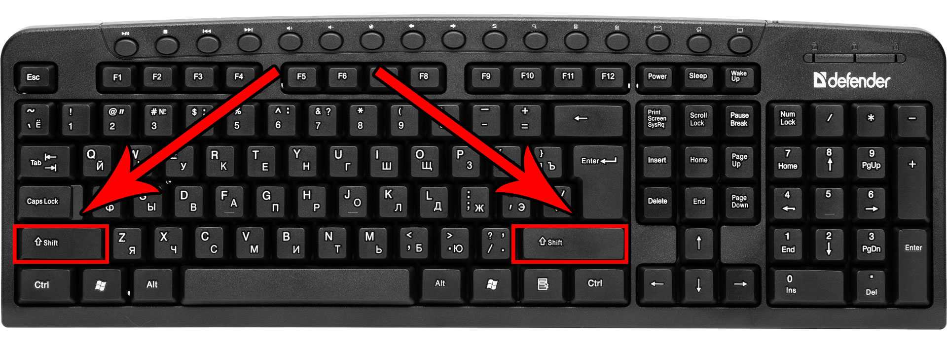Клавиши такого рода называют модификаторами, они изменяют поведение других кнопок и мыши, благодаря чему расширяют функционал клавиатуры. На всех устройствах ввода две кнопки «шифт», по одной с каждой стороны буквенно-цифрового блока, во втором ряду снизу. Левая расположена между Ctrl и Caps Loсk, правая — между клавишами Ctrl и Enter, рядом со стрелкой «Вверх». На ноутбуке кнопка Shift помечается контуром стрелки, направленной вверх, без обычной для отдельно стоящих клавиатур стационарных ПК надписи.