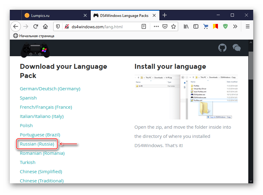 Если игра не связана с платформой Steam, например, приобретена и установлена в другом сервисе, придется скачать дополнительное ПО. Таких программ несколько, но принцип их работы мало чем отличается. Рассмотрим настройку Dualshock 4 в Windows 10 на примере приложения DS4Windows.