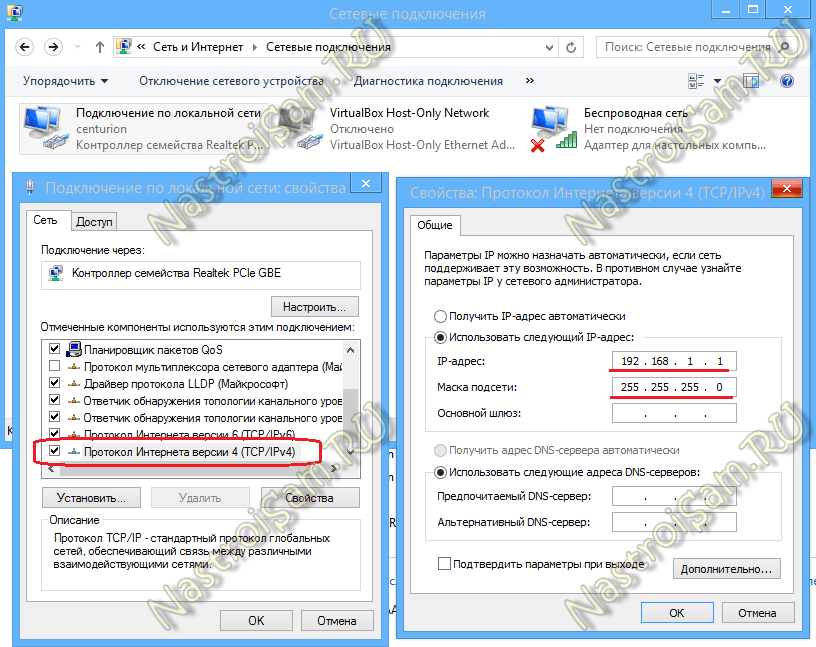 Теперь давайте разберемся с ip-адресами и прочими сетевыми настройками. Все, что я буду описывать, необходимо будет выполнить как на компьютере, так и на ноутбуке.