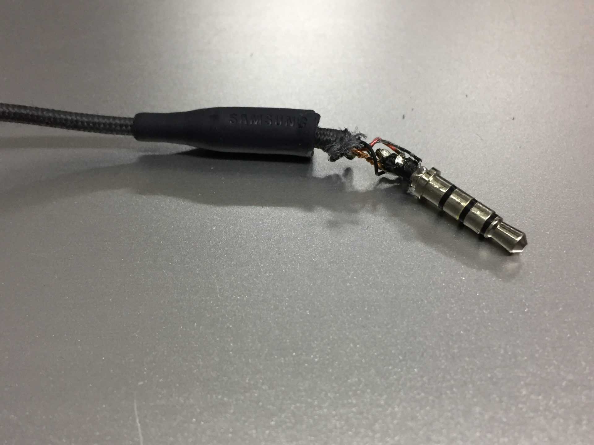 Место обрыва провода обычно очевидно, начинает периодически пропадать звук в одном из телефонов при шевелении провода. В таком случае и без приборов понятно, в каком месте перетерся провод. Приведу пример самостоятельного ремонта внутриканальных наушников htc.