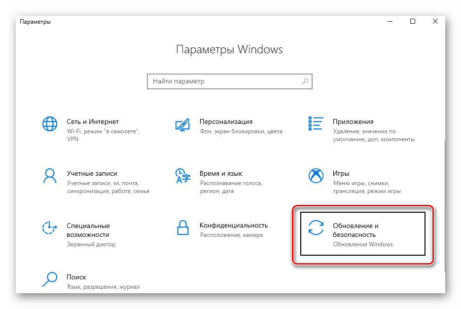 Помимо этого, стоит запустить проверку обновлений. Возможно, неудачная инсталляция одного из них и стала причиной отказа мыши. Для этого нажмите вместе клавиши «Win+I». Откроется окно «Параметров» Windows 10. В нем следует выбрать стрелками раздел «Обновление и безопасность», после чего нажать «Enter».
