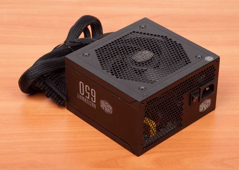 Казалось бы, настолько производительная машина должна потреблять много энергии. Это не так: компьютер потребляет в пике не более 430 ватт. Поэтому и брать блок питания на киловатт смысла нет. Подойдёт и Cooler Master MasterWatt на 650 Вт по линии 12 В. Можно взять и более надёжные Seasonic или SuperFlower, но их сложно найти в продаже, да и не каждый решится отдать в 2 раза больше денег. Даже внутри MasterWatt стоят довольно качественные компоненты от производителя HEC и DC/DC-конвертер. Такое сочетание даёт низкий уровень пульсаций и хорошую стабилизацию напряжений. То есть БП надёжен. К тому же блок полумодульный — многие провода отсоединяются. Это облегчит укладку и подключение кабелей к комплектующим.