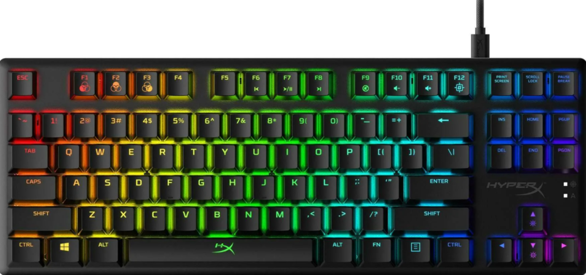 Игровая механическая клавиатура с подсветкой от американского бренда «HyperX». Подходит геймерам, которым необходима надежная периферия без цифрового блока. Компактная, значительно увеличивает свободное место на поверхности стола.