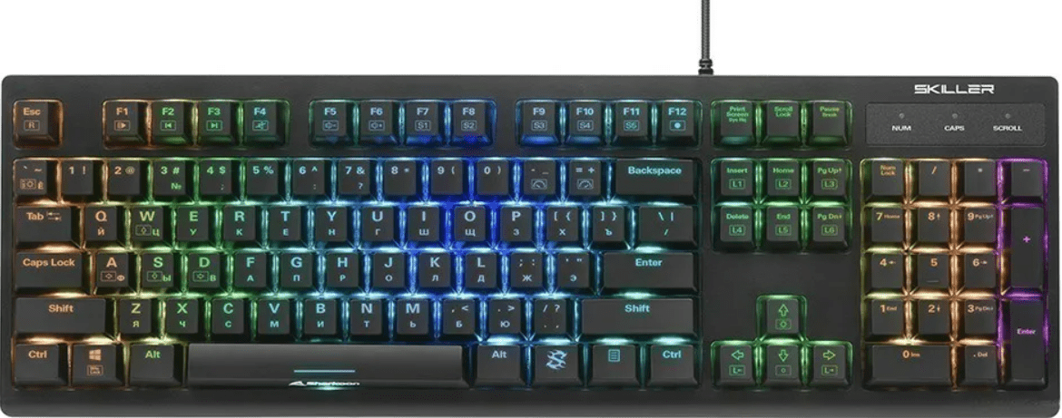 Игровая клавиатура Sharkoon Skiller SGK30 Blue Switch показывает высокую точность и идеально подходит для геймеров. Она обладает встроенной RGB-подсветкой, подключается к компьютеру при помощи кабеля USB.