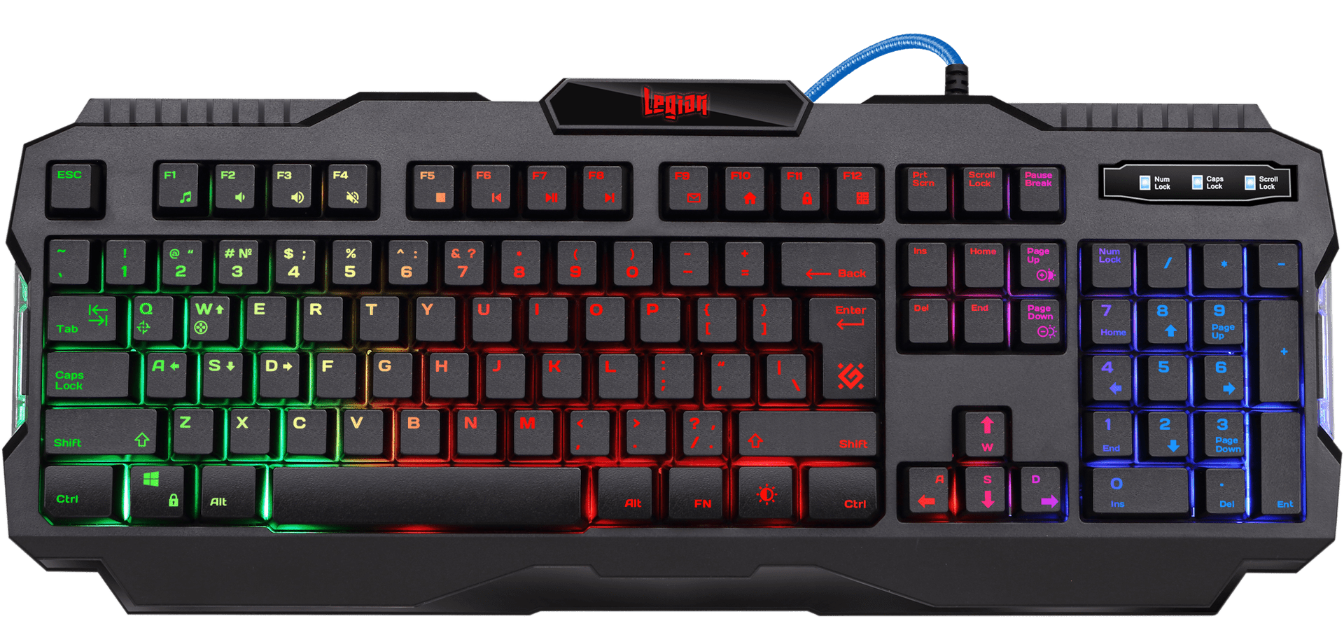 Проводное игровое устройство от российского бренда «Defender» с расширенной RGB-подсветкой и специальными игровыми функциями. Предлагает горячие клавиши для быстрого доступа к интернету, мультимедийным и офисным приложениям.