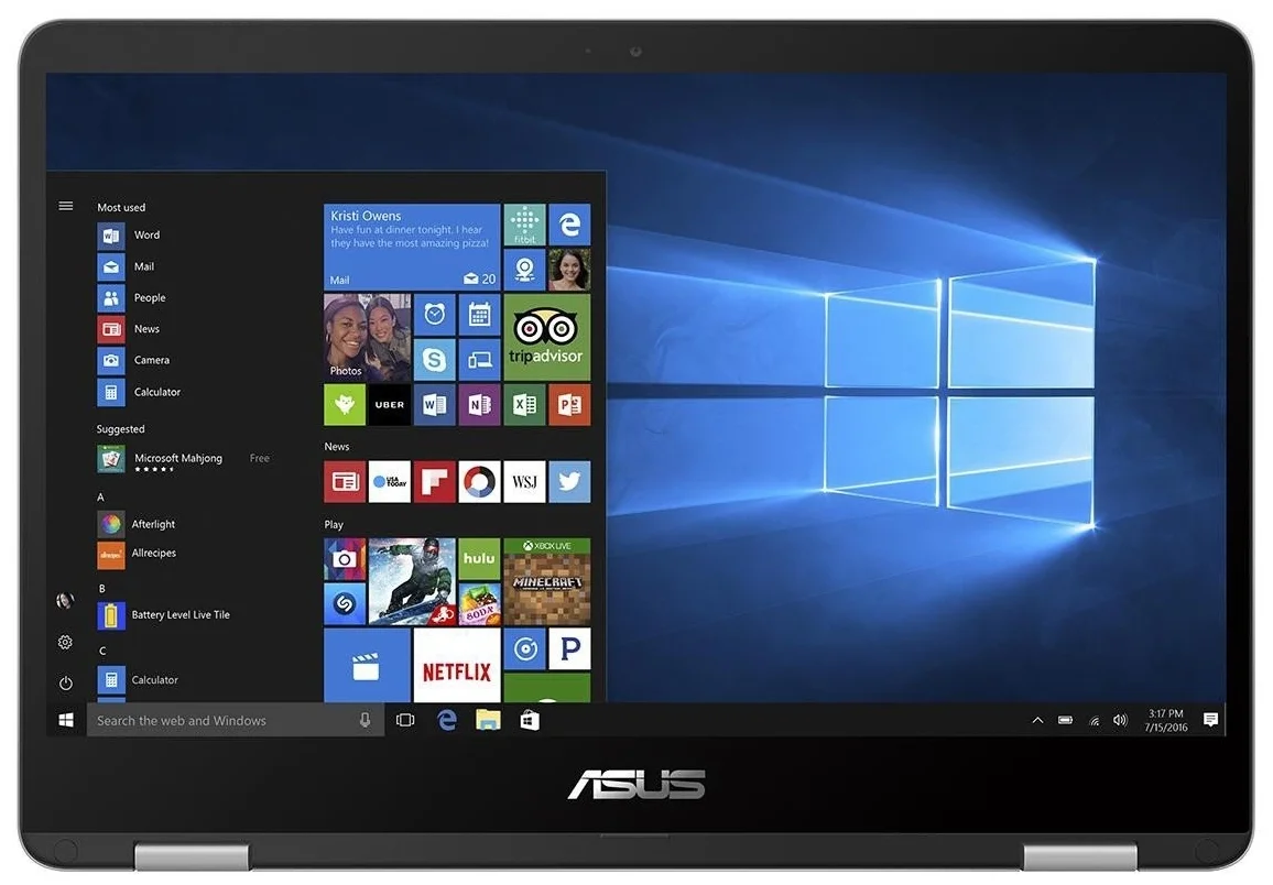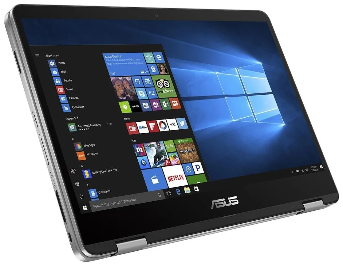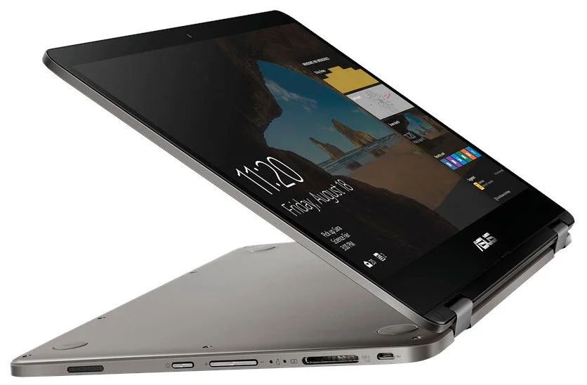 Главное достоинство этого ноутбука-трансформера — шикарная 14-дюймовая IPS матрица с антибликовым покрытием, очень высокой яркостью, широкими углами обзора и разрешением вплоть до 3840 до 2160 точек (в зависимости от комплектации). Топовая версия оснащается процессором Core i7 с частотой до 2300 МГц, 16 ГБ оперативной и 1 ТБ постоянной памяти.