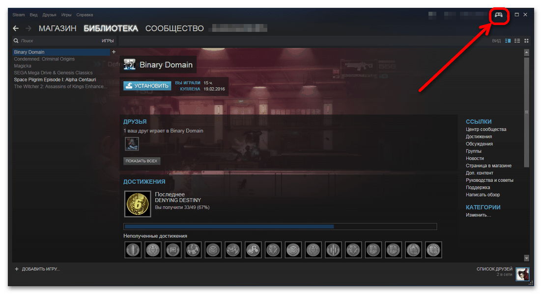 - Нажмите на иконку с изображением контроллера вверху справа.