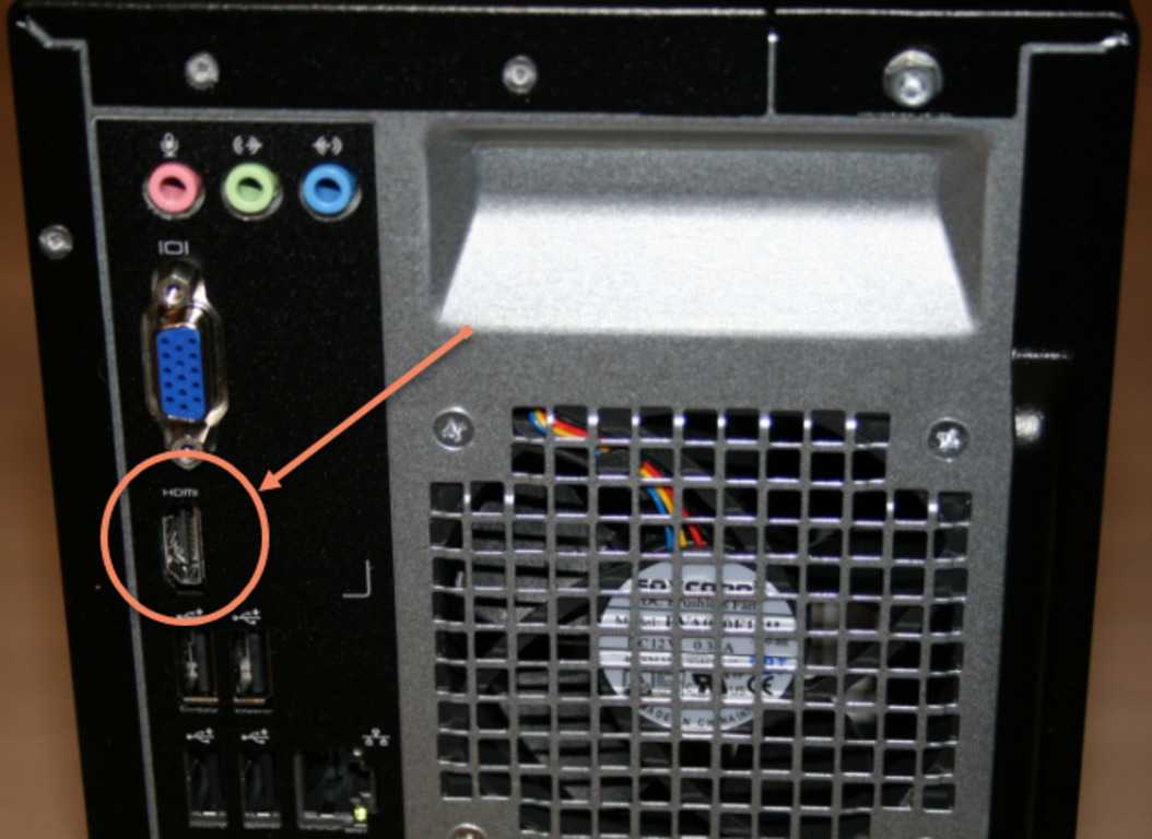 Если на вашем компьютере интегрированное видео — такое гнездо будет располагаться непосредственно на внешней планке материнской платы. Обычно оно располагается рядом с портами USB.