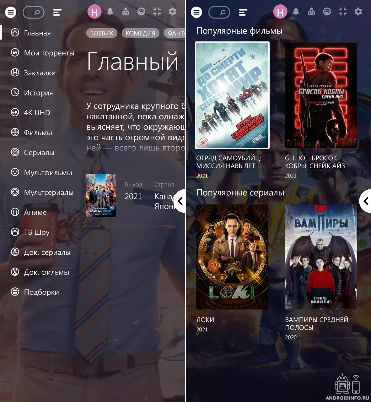 Ещё один сайт, который точно так же, как и рутрекер, предлагает скачивание фильмов через торрент. Соответственно, до начала использования ресурса его нужно установить на планшет или мобильный телефон.