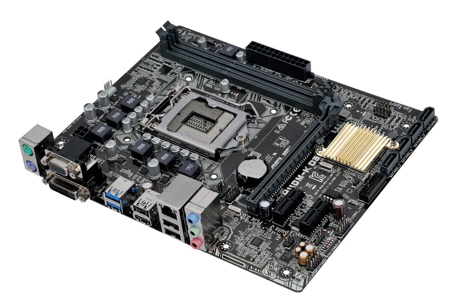Сделана она в форм-факторе Micro-ATX, позволяющем подобрать компактный корпус. Есть два слота под оперативную память DDR4 с максимальной частотой в 2666 Мгц и максимальным объёмом в 32 гигабайта. На борту имеется 4 порта SATA-3, слот PCI-E x-16 и 2 PCI-E x1. Внутренние коннекторы позволят подключить 2 порта USB 2.0 и два USB 3.2 Gen1. На задней панели есть 4 выхода USB 2.0, два USB 3.2 Gen1, HDMI, VGA, DVI-D и классический комбинированный PS/2. Сетевой адаптер поддерживает скорость в 1 гигабит. В качестве аудиокодека выступает Realtek ALC887 с поддержкой 7.1 звука.