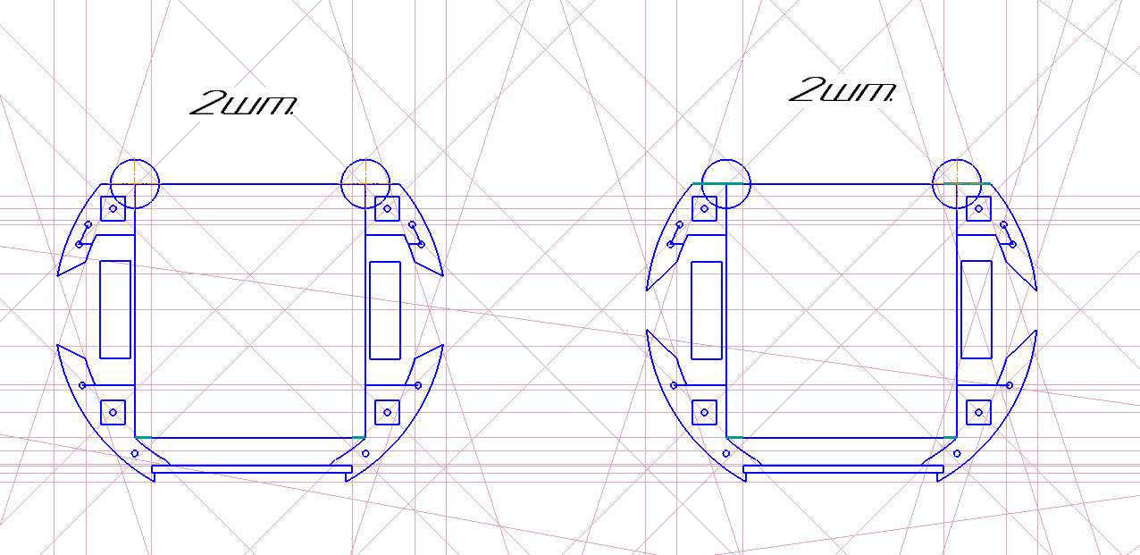 После примерки первой версии корпуса я решил переработать чертежи: уменьшить толщину стенок корпуса, чтобы увеличить внутреннее пространство.