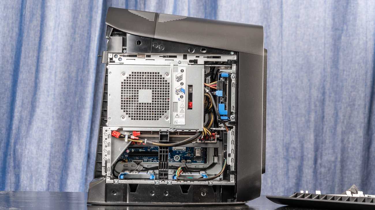 The Alienware Aurora remains blissfully easy to upgrade. The system’s side panel pops off with the quick pull of a lever, and with the Aurora’s unique internal hinge, you can slide out the power supply and gain access to the GPU and other internals without lifting a screwdriver. From there, you can swap out the graphics card, RAM and storage drives completely tool-free.