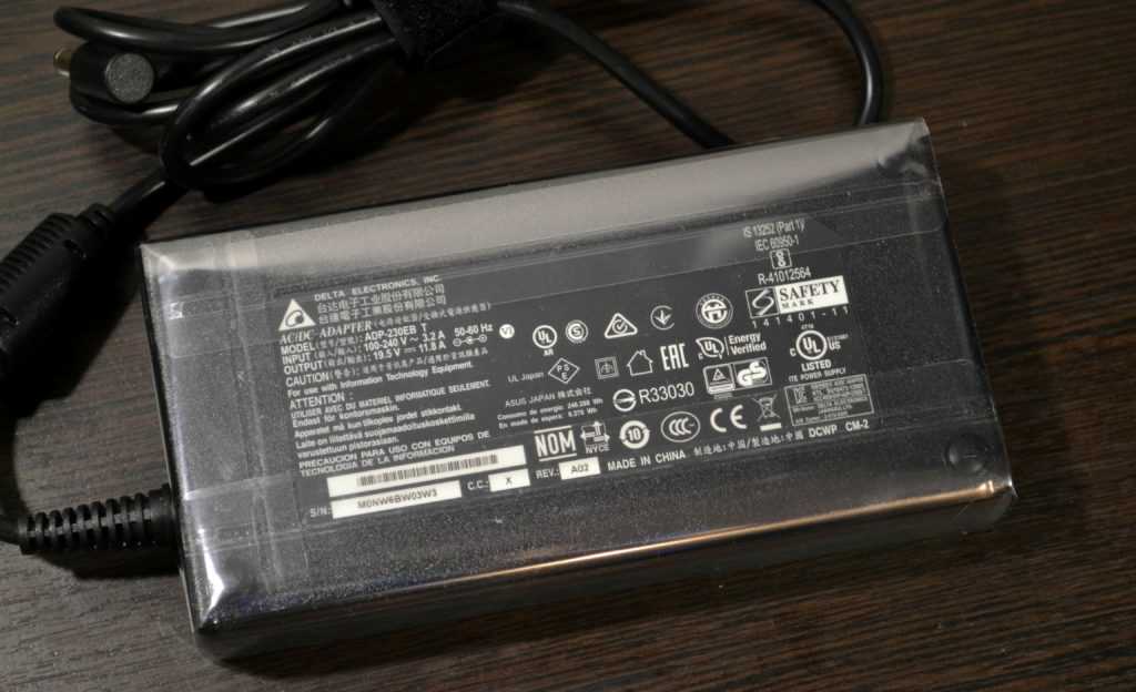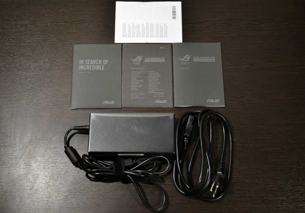 Разъём для зарядки располагается сзади, блок питания плоский и не очень крупный. Литий-ионная батарея ёмкостью 90 Вт·ч несъёмная. Время работы ноутбука вполне стандартное для игрового сегмента и регулируется несколькими профилями, но с оглядкой на мощные Ryzen 9 и RTX 3070. В профиле экономии энергии ROG Strix G713QR проживёт около 10 часов и за час восстановит заряд.