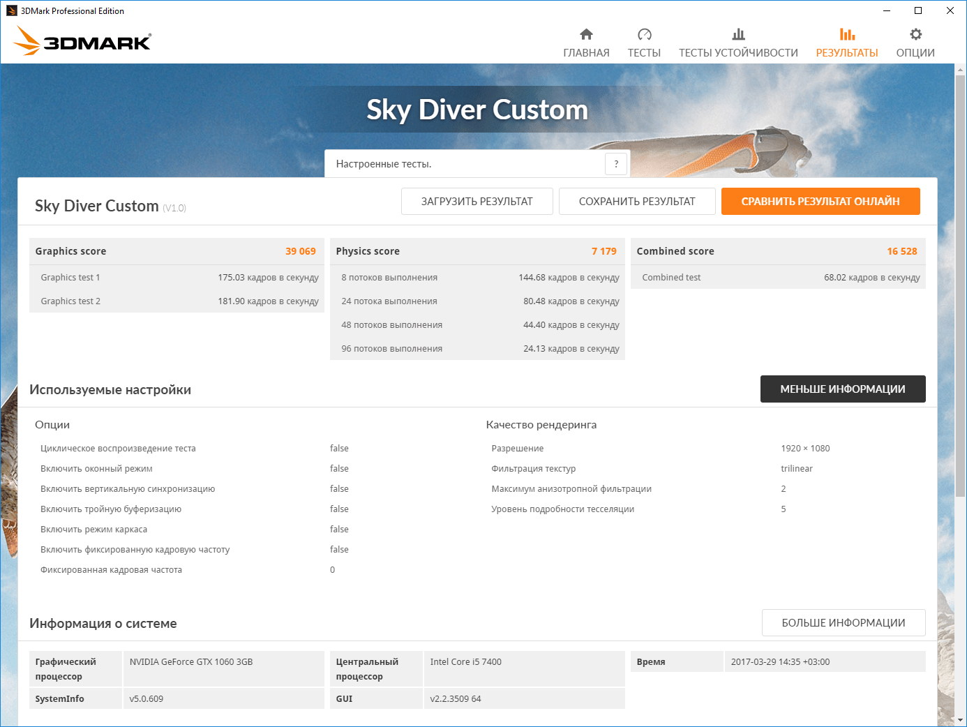 | Core i7-7700 + GeForce GTX 1060 3 Гбайт @1506(1708)/2000 МГц | Core i7-7700 + GeForce GTX 1060 3 Гбайт @1756(1959)/2274 МГц | |||