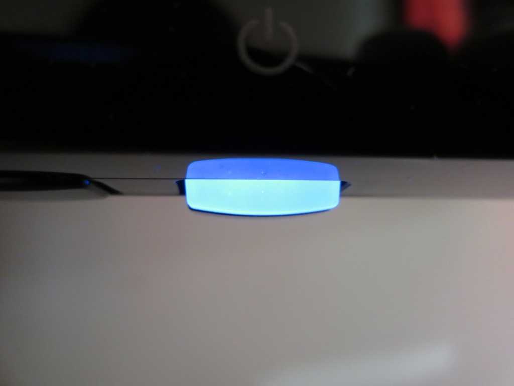 The power button extends further than the others and has a status light which glows blue for ‘on’ and amber for ‘standby’. This isn’t too bright and is not really visible from a normal viewing position, so it doesn’t distract the user.