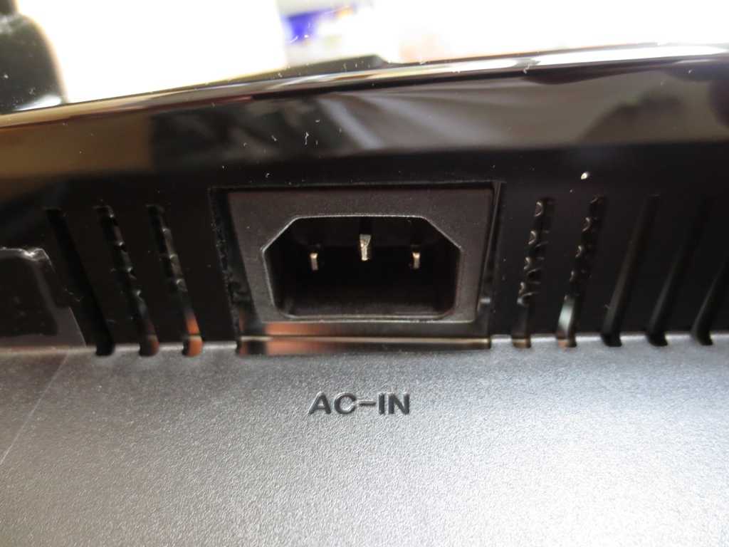 To the right is a selection of downwards-facing ports; DisplayPort, Dual-Link DVI, HDMI, audio in (line-in) and audio out (headphone jack). ASUS includes a power cable, Dual-Link DVI cable and line-in cable for you in the box. There’s also an information label just under the ports containing the serial number and date of manufacture.