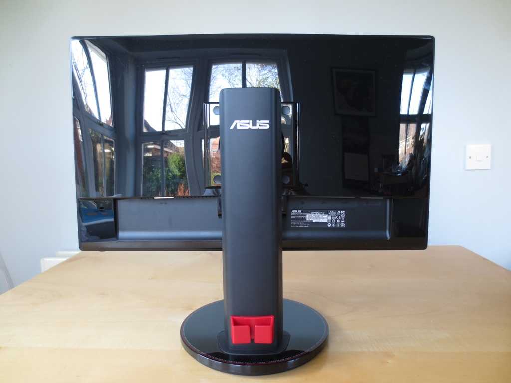 The stand base is circular and advertises some key features around the edge atop a red stripe; ‘144Hz Trace Free’ and ‘Nvidia 3D Vision Ready’ amongst others. It sits very firmly on the desk with plenty of rubber feet and a clever rotation mechanism that allows the monitor to be swiveled. Depending on how you position the monitor it can provide 45° swivel either way, 90° one way or any values in between that add up to the full field of rotation (90°).