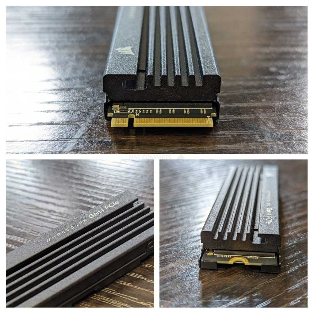 При взгляде на Corsair Force Series Gen.4 PCIe MP600 сразу бросается в глаза предустановленная система охлаждения. Радиатор легко снимается и в теории накопитель можно установить даже в ноутбук. Но в этом случае придется обеспечить адекватное охлаждение. Напомню, что NVMe-накопители могут серьезно нагреваться и «тротлить», теряя скорость.