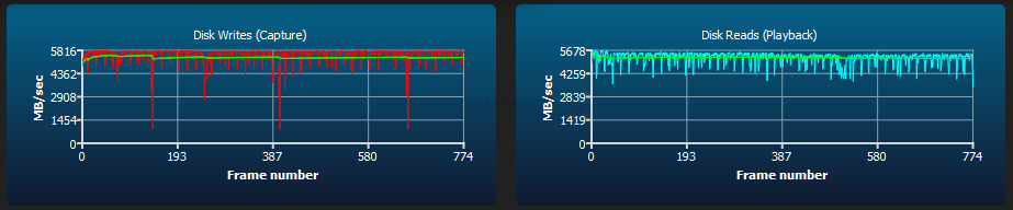 4GB AJA File Test Results (Peak) = 5816MB/s Read & 5678MB/s Write