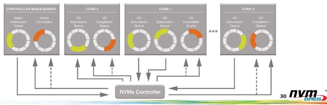 Новый носитель построен на микросхемах памяти с технологией 3D NAND Flash, которая обеспечивает большую емкость в меньшем размере и увеличивает ресурс работы чипа. Высокая скорость достигается за счет применения в контроллере протокола нового поколения NVMe 1.3 (Non-Volatile Memory Express, NVM Express). Он использует шину PCI Express (самую производительную в компьютере), которая обладает существенно большими скоростями передачи данных, чем традиционная шина SATA.