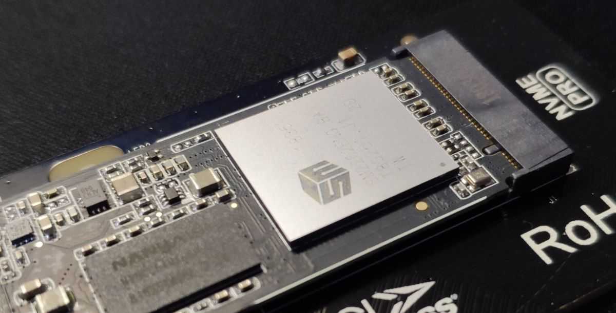 В данной модели производитель интегрировал контроллер SM2262EN от Silicon Motion с функцией SLC кэширования и использования буфера DRAM. Для обеспечения сохранности данных при копировании здесь реализован улучшенный алгоритм исправления ошибок LDPC (код с малой плотностью проверок на четность), что в разы увеличивает срок службы памяти. В качестве носителей на плате применили два чипа DDR3 Nanya NT5CC64M16GP.
