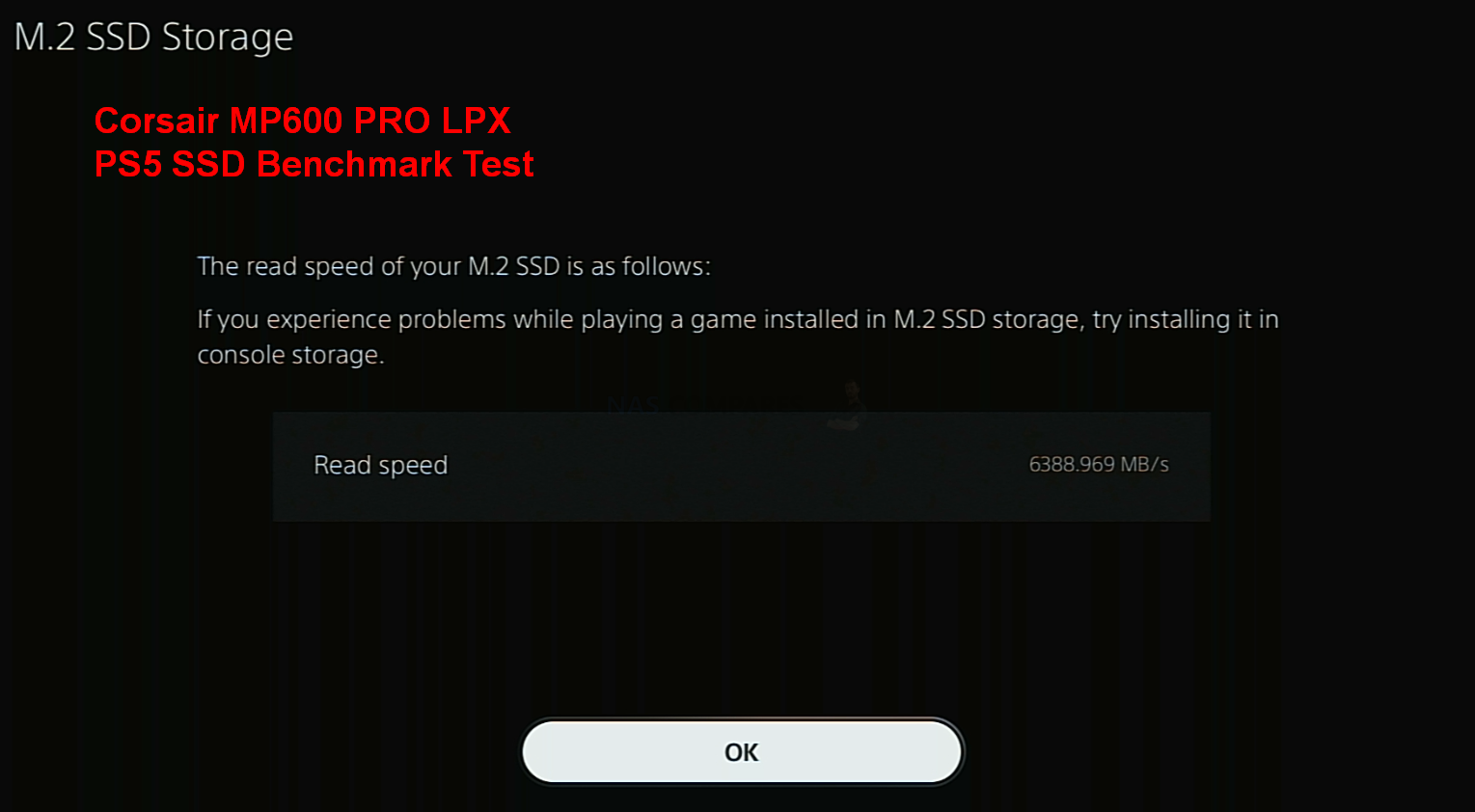When installing the Corsair MP600 PRO LPX in the PS5, we performed a benchmark using the system’s own tool several times and although the highest it achieved was 6388MB/s, the best average temp was around 6300-6400MB/s.
