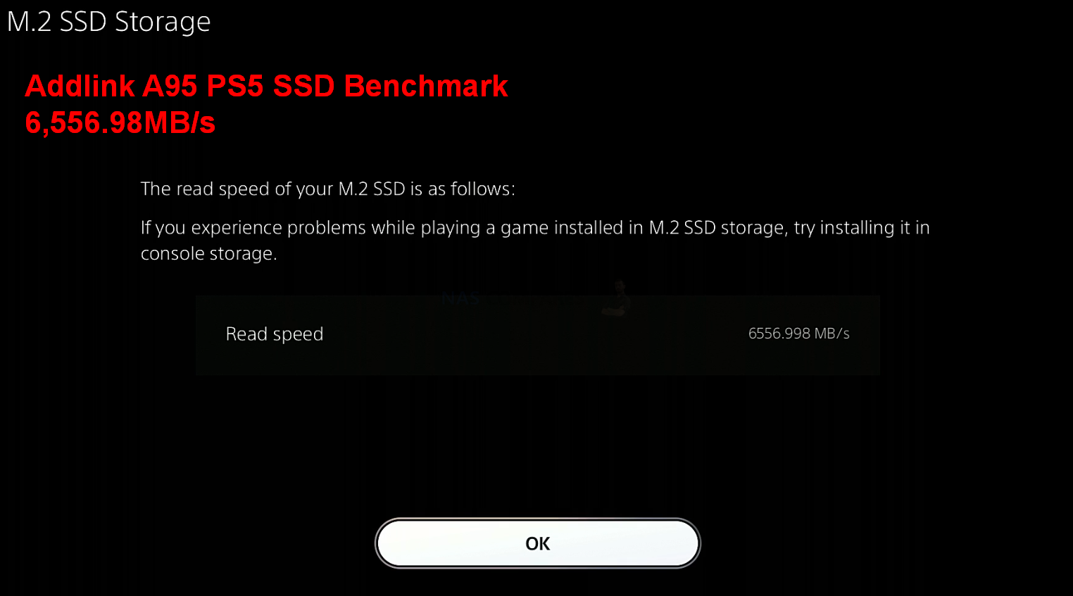 | Addlink A95 PS5 Benchmark – 6556MB/s | XPG GAMMIX S70 PS5 Benchmark – 6235MB/s |