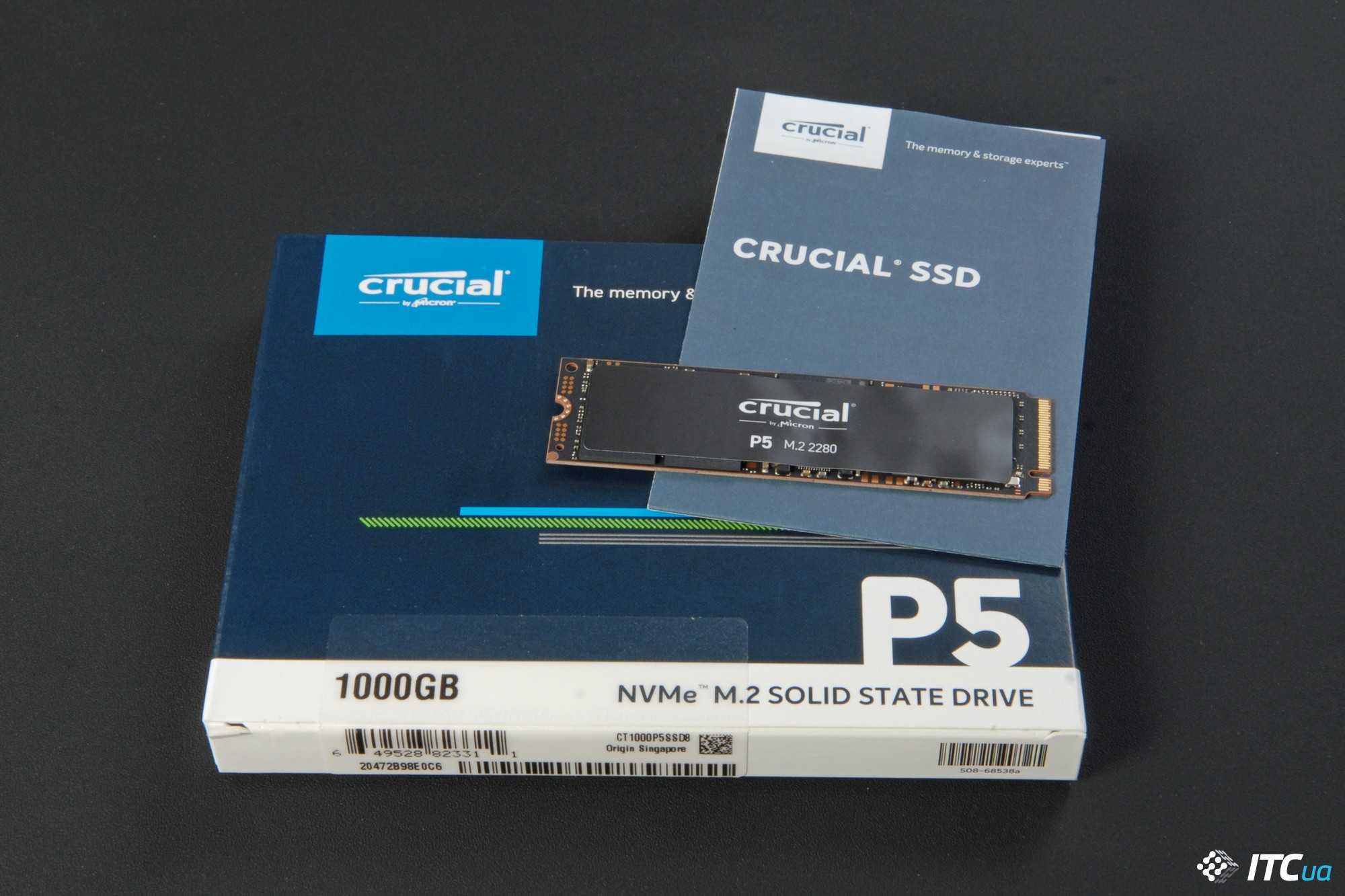 У нас на тестировании побывала модель Crucial P5 объемом 1 ТБ. Накопитель поставляется в картонной коробке средних габаритов.