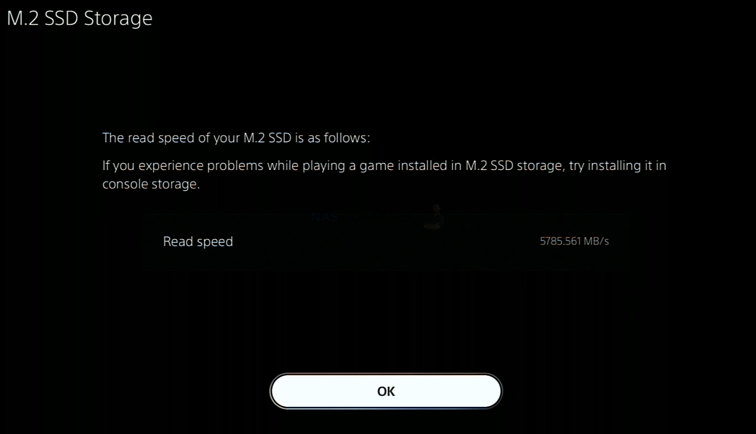 Here is the PS5 internal Benchmark for the Crucial P5 Plus SSD at the initialization of the system: