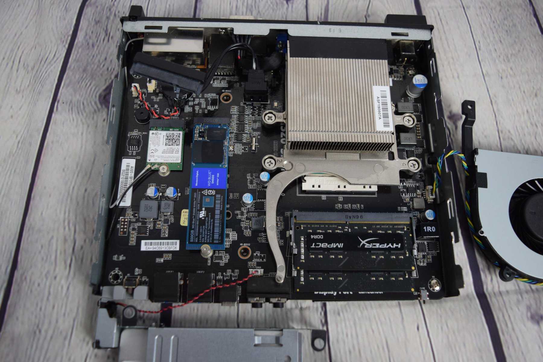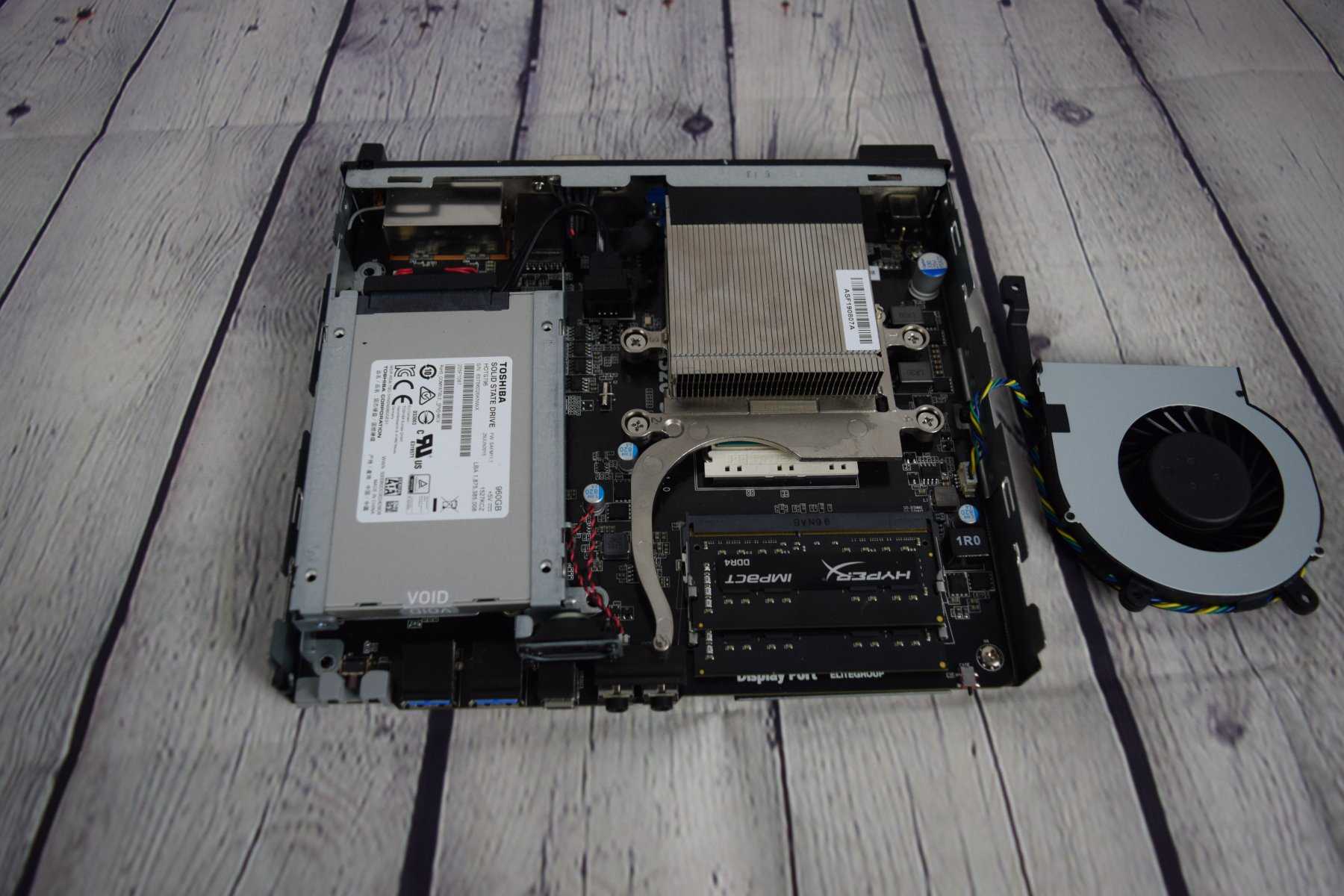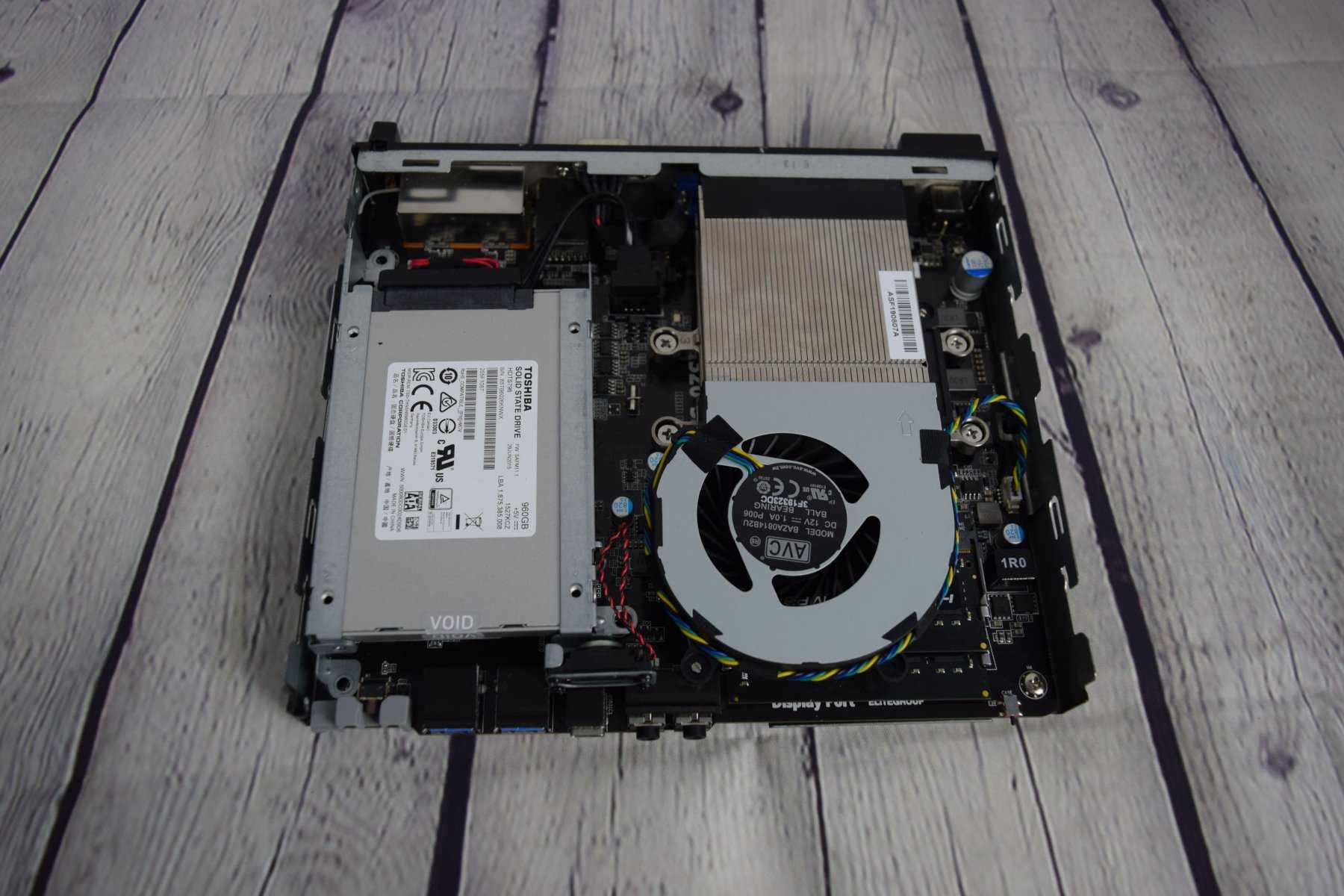 В системе используется вентилятор на шарикоподшипниках, похожий на ноутбук, диаметром примерно 2,6 дюйма. Он расположен над модулями DDR4 и пропускает воздух через алюминиевый радиатор.