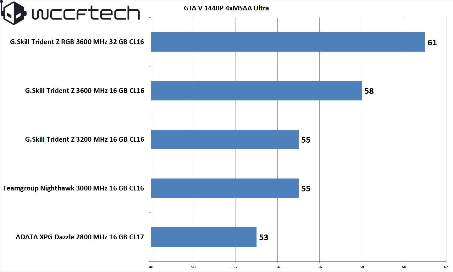 Gaming applications generally don’t see huge gains with different memory kits but DDR4 has enabled a huge gain in memory frequency which can impact gaming performance. Moving from the stock 2600 MHz to 3600 MHz gained us anywhere from 5 to 10 FPS which is something that wasn’t possible previously on older DDR3 memory kits. DDR4 is much mature than it ever was before.