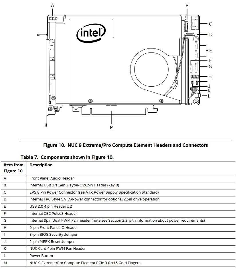 - EPS12V 8pin power connector for Intel NUC Extreme/Pro Element