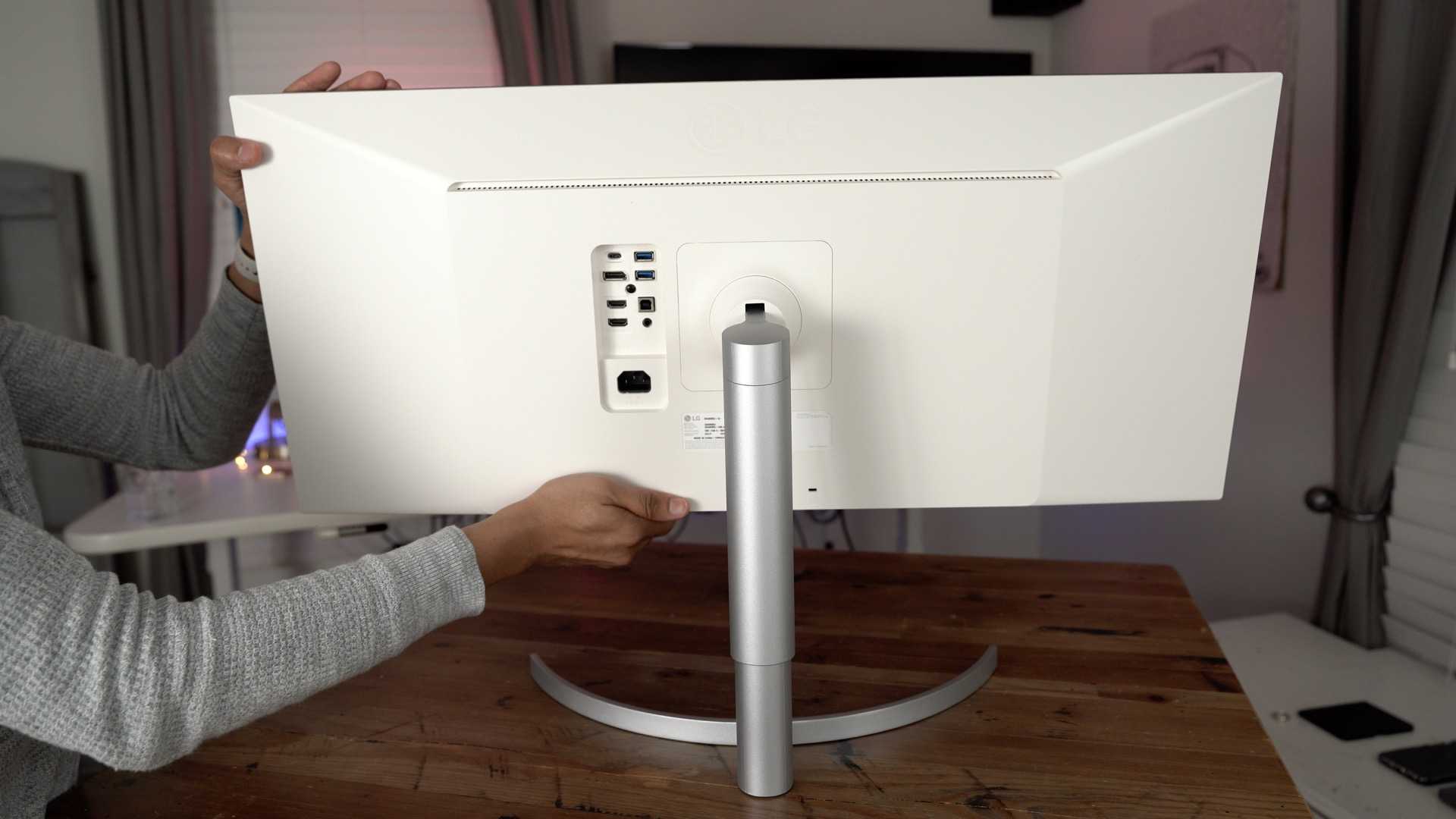 For those not satisfied with the stand’s adjustment ability, the 34WK95U includes VESA mounting holes behind the stand panel for mounting on a third-party monitor arm, stand, or wall mount.