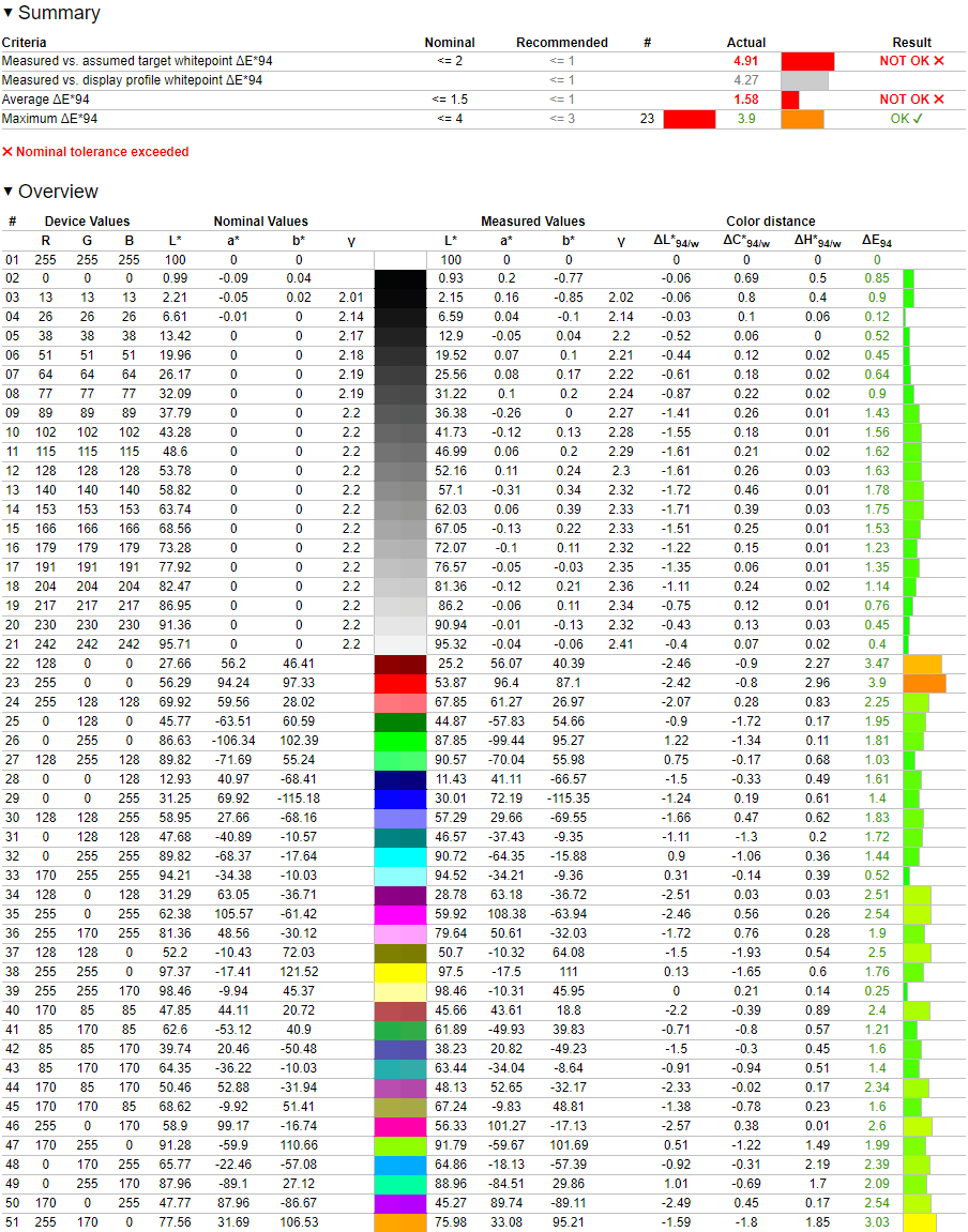 У монитора достаточно хорошо настроена точка белого, да и стабильность ЦТ оттенков серого вызывает приятное удивление.