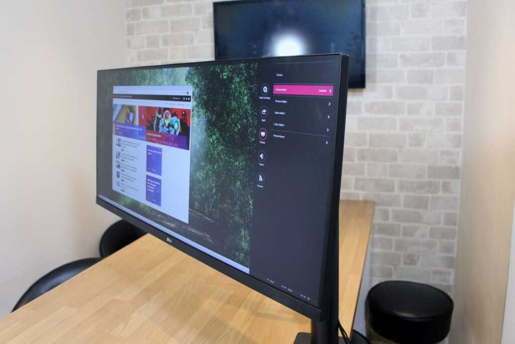 LG делает упор на практичность. Экранное меню занимает правую часть дисплея и содержит все обычные параметры, а центральный джойстик обеспечивает простое управление. Приложение для Windows также может настраивать параметры и различные параметры «картинка в картинке» и «картинка за картинкой».