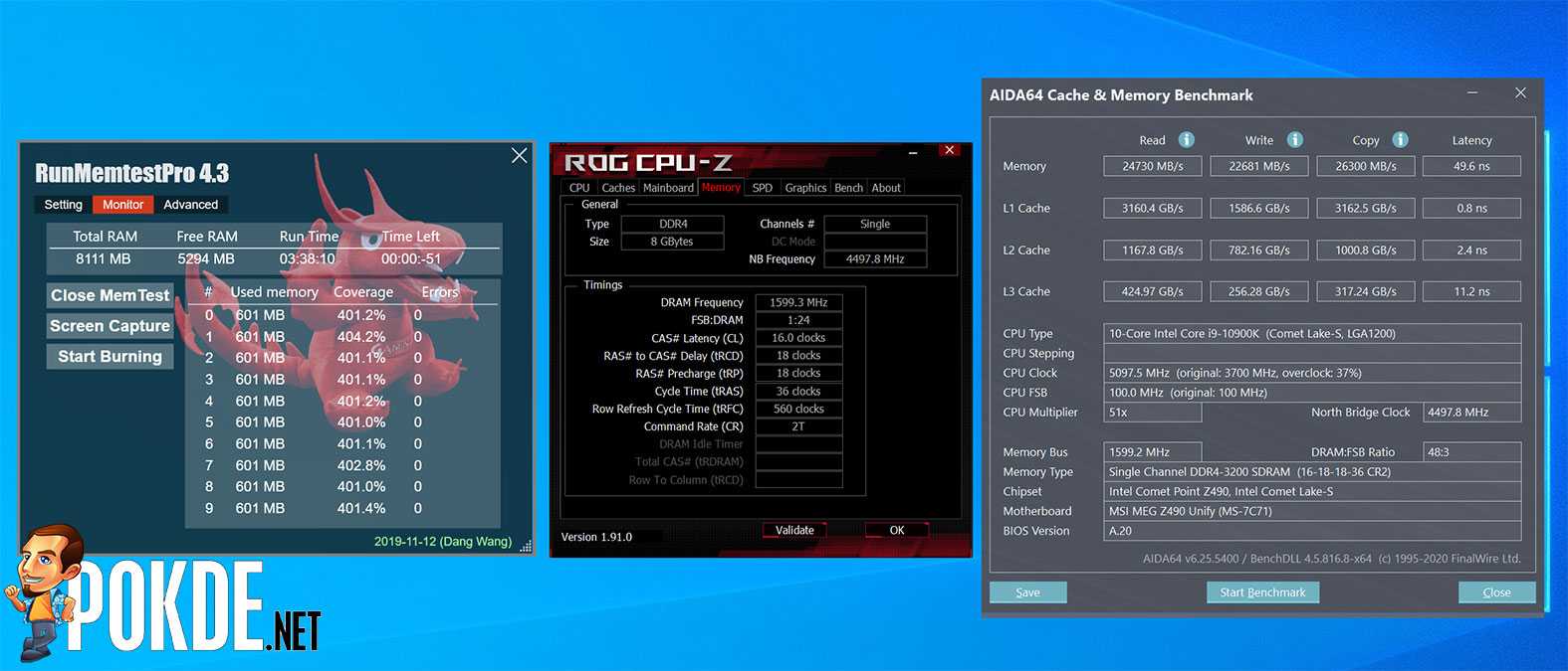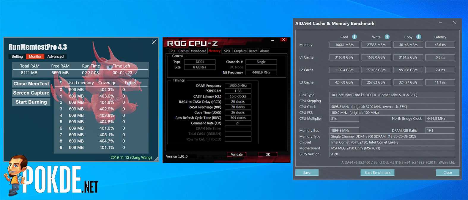 По данным утилиты Thaiphoon Burner, здесь используются микросхемы памяти Samsung K4A8G085WB-BCRC серии Samsung B-die, известные хорошим частотным потенциалом.
