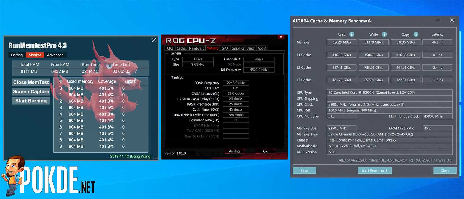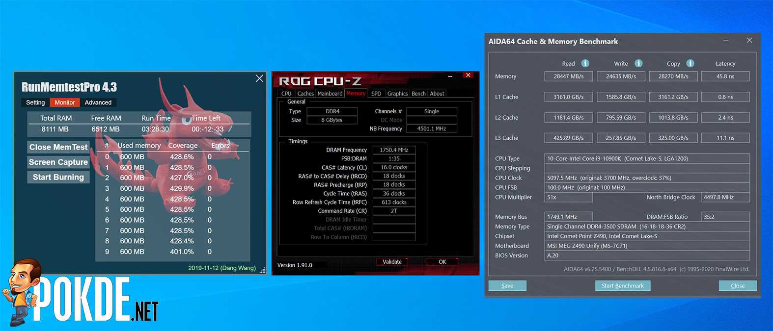 Работа набора в штатном режиме не вызывает каких-либо вопросов. Пропускная способность памяти в этом случае составляет порядка 50 ГБ/с для чтения/записи.