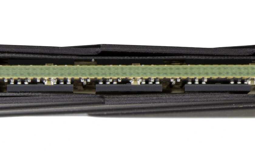 Вопрос охлаждения решается за счёт массивных алюминиевых радиаторов, причём тепло отводится как с лицевой, так и с обратной стороны чипов через теплопроводящую подушечку. Радиаторы замыкаются по краям модуля памяти, и иногда такая конструкция ведёт к слабому прижиму посередине, но в данном случае этой проблемы не наблюдается: прижим равномерно хороший.