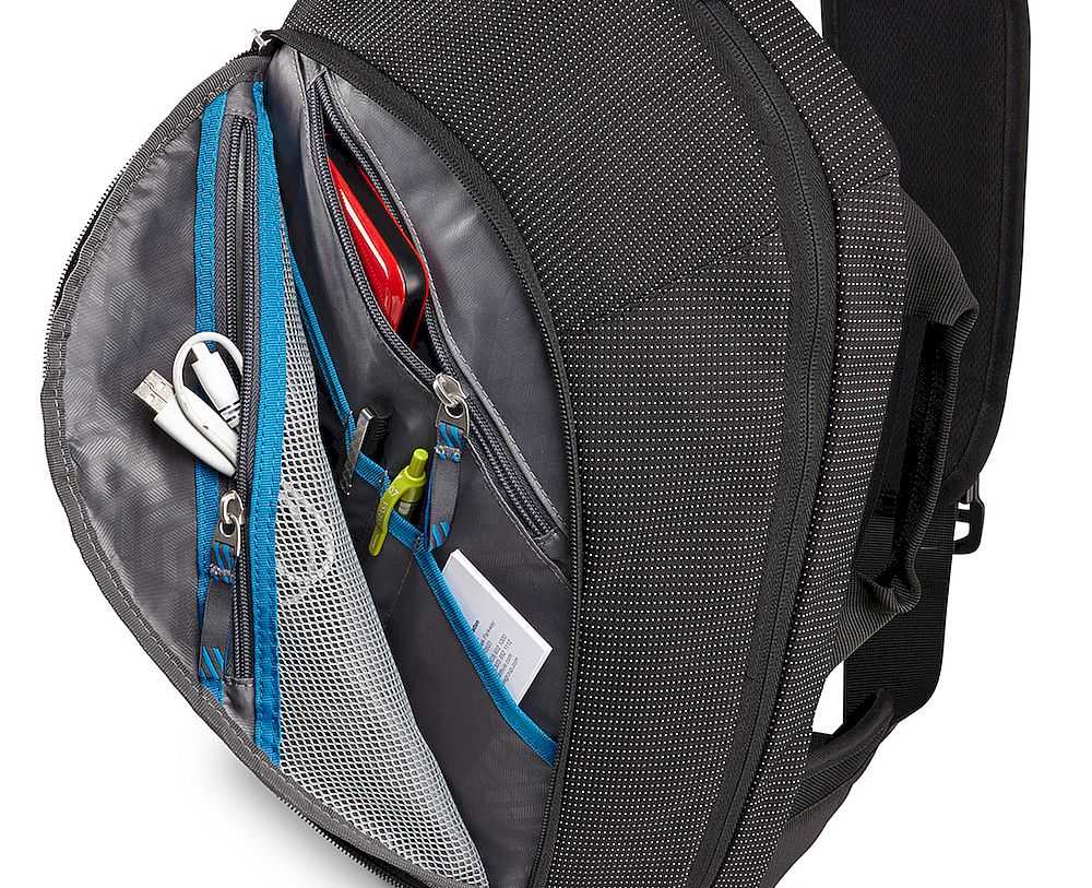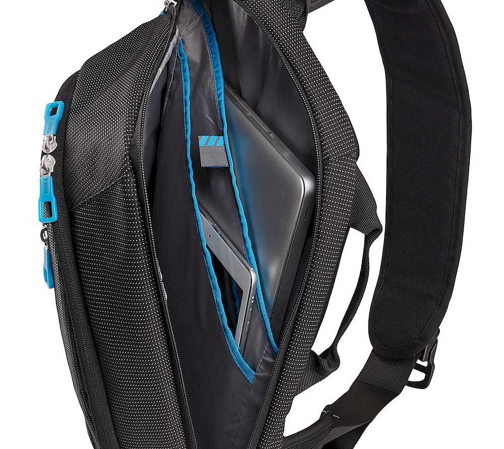 Если я хожу с рюкзаком, то также таскаю с собой небольшую сумку через плечо, где лежат часто извлекаемые вещи типа кошелька, маленького планшета, телефона и т. п. С Thule Crossover Sling от мелкой сумки удалось легко отказаться. Слинг легко перебросить на грудь буквально одним движением и что-то полезное из него достать: