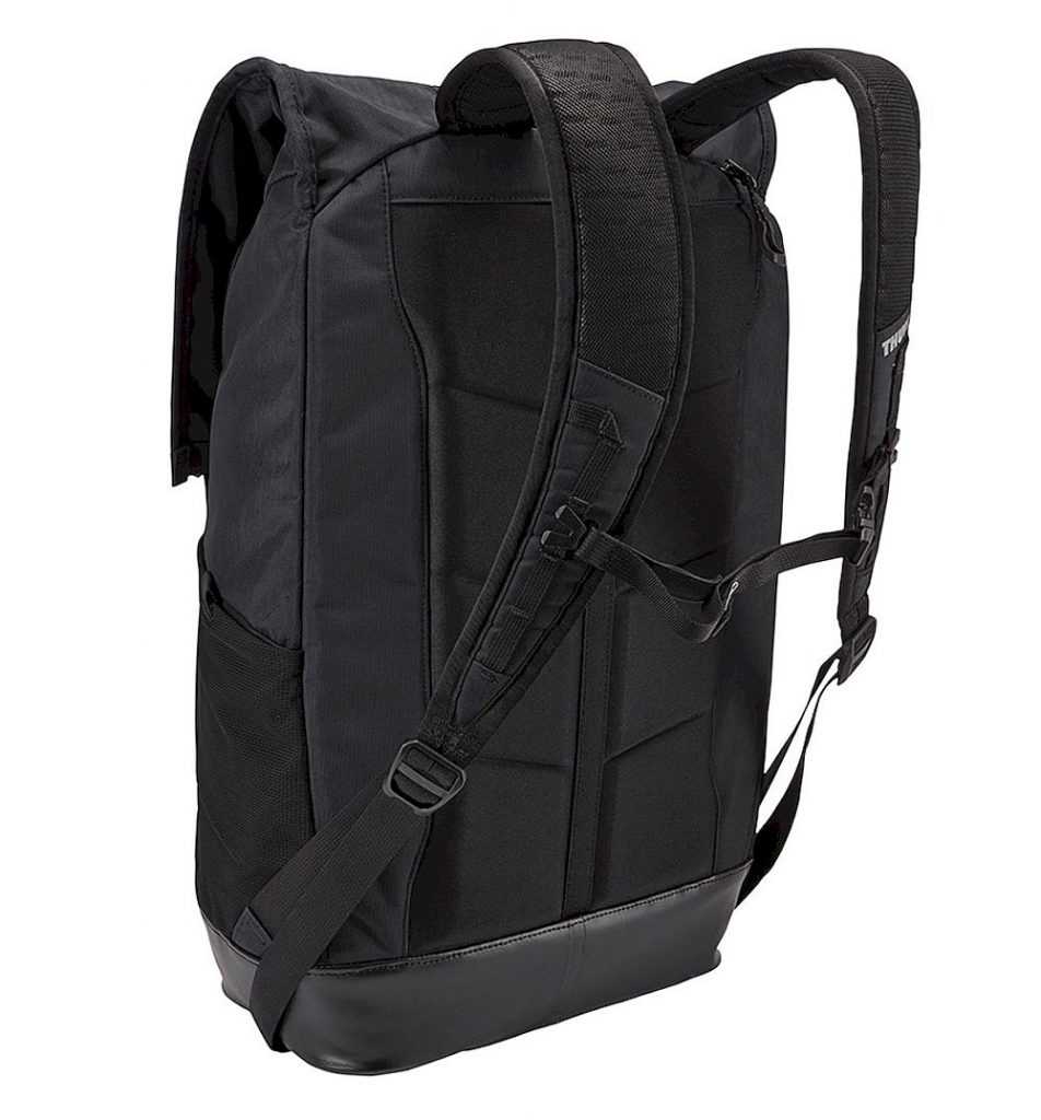 Прямоугольный рюкзак Thule Paramount на 29 л, отличается по конструкции от рассмотренных ранее вариантов наличием верхнего клапана. Нижняя часть этой детали фиксируется на фастексах и закрывает доступ к основному отделению.