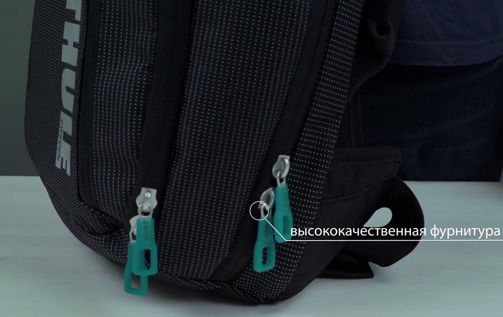 Рюкзаки Thule Crossover, например черный Back Pack 32L, изготовлены из dobby-нейлона, называемого баллистическим. Он не рвется, не царапается, всегда выглядит как новый. Цвет – черный или синий в белую точку. Ремешки выполнены из еще более плотного материала, чем корпус рюкзака, поэтому первая регулировка дается с трудом. Но стоит расслабить и затянуть лямки 2-3 раза, и этот процесс значительно облегчается.