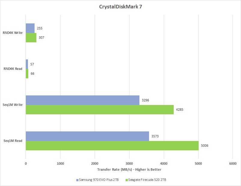 Seagate quotes a maximum of 7,300MB/s reads and 6,900MB/s writes for the 2TB review sample, and over most of the synthetic benchmarks, I hit those numbers or even slightly bettered them.