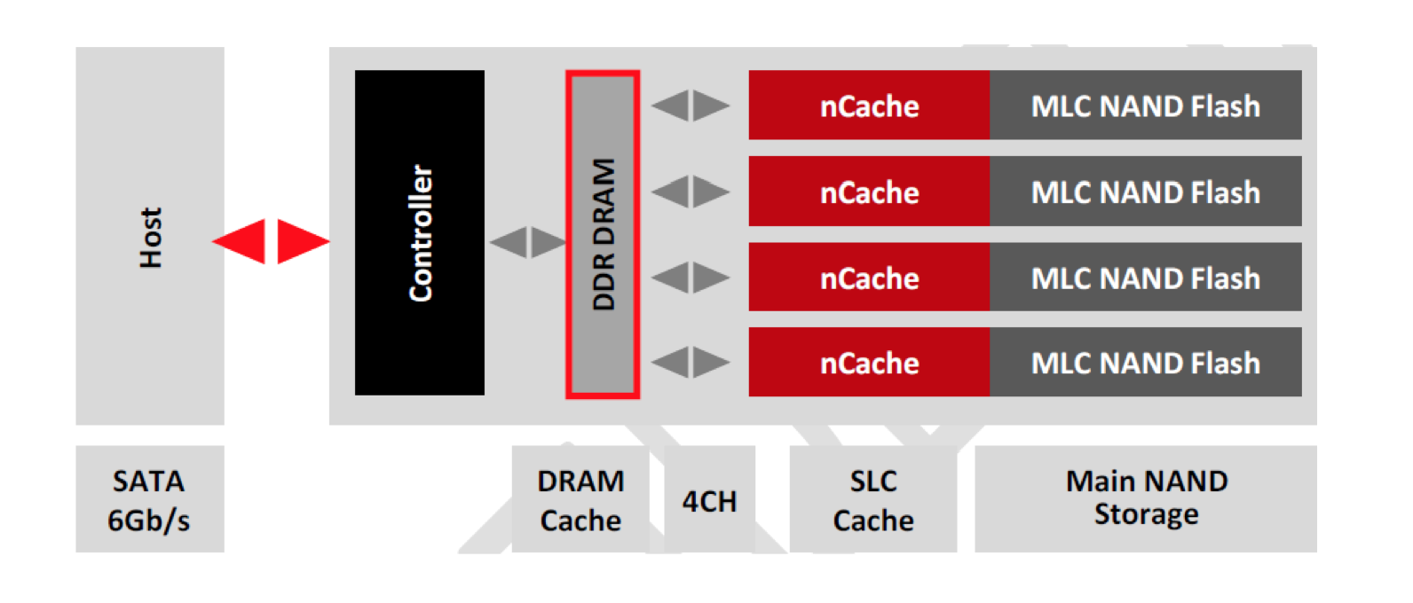 The nCache, or pseudo-SLC, or On Chip Copy, goes between the DRAM buffer and the main MLC NAND Flash. During load of small writes, nCache stores all the data that you put onto the SSD at the performance level of SLC. When idle, the said data will then be processed into MLC NAND by the internal garbage collection.