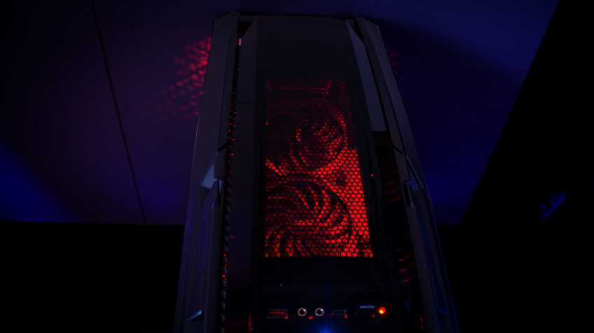 Встроенная подсветка способна отображать более 16 миллионов цветов и поддерживает несколько режимов свечения. Помимо, чисто декоративной функции, фронтальная панель оказалась еще и очень функциональна. Здесь расположен оптический привод, набор портов USB 3.1 с поддержкой Super Charger 2, включая реверсивный Type-С, аудио порты для подключения гарнитуры и порт VR Link для более удобного подключения шлема виртуальной реальности.
