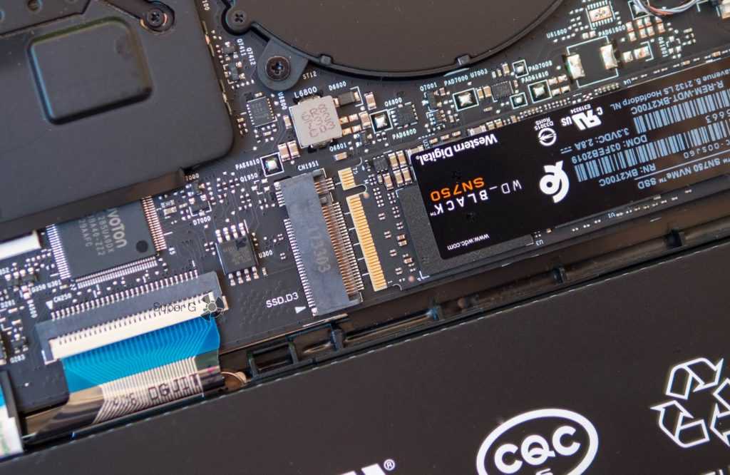 Подбор видеокарты, процессора и других комплектующих — отдельная история. Сегодня мы коснёмся лишь жёсткого диска. Мой вариант — WD BLACK SN750 NVMe на 500 ГБ. Подключается он к порту PCIe третьего поколения с четырьмя каналами. Это крайне важный момент, ибо со своим ноутбуком Xiaomi Mi Notebook Pro 15.6 я немножечко пролетел. На «мамке» лэптопа есть свободный слот, но поддерживает он всего лишь два потока. Таким образом, в моём случае скорость порезалась практически вдвое. Не повторяйте моих ошибок и внимательно подбирайте материнскую плату с подходящим подключением.