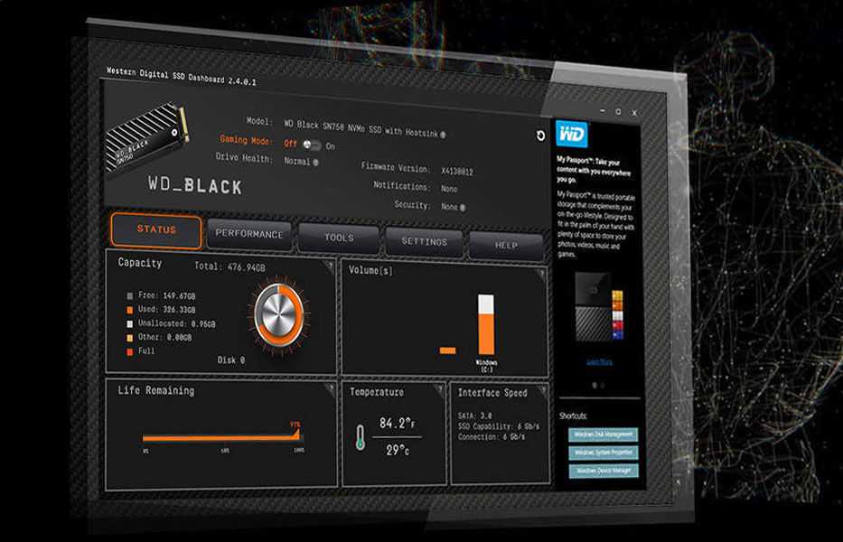 Отдельно нужно упомянуть фирменный софт WD BLACK SSD Dashboard, позволяющий оптимизировать работу SSD под текущие нужды: например, при необходимости отключить режим энергосбережения для накопителя, чтобы обеспечить максимальную производительность.