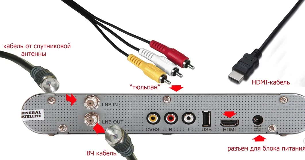 Всего выделяют 7 вариантов подключение ресивера к телевизору: RCA, Scart, HDMI, DVI/D-SUB, LAN, CAM-модуль, антенный вход.